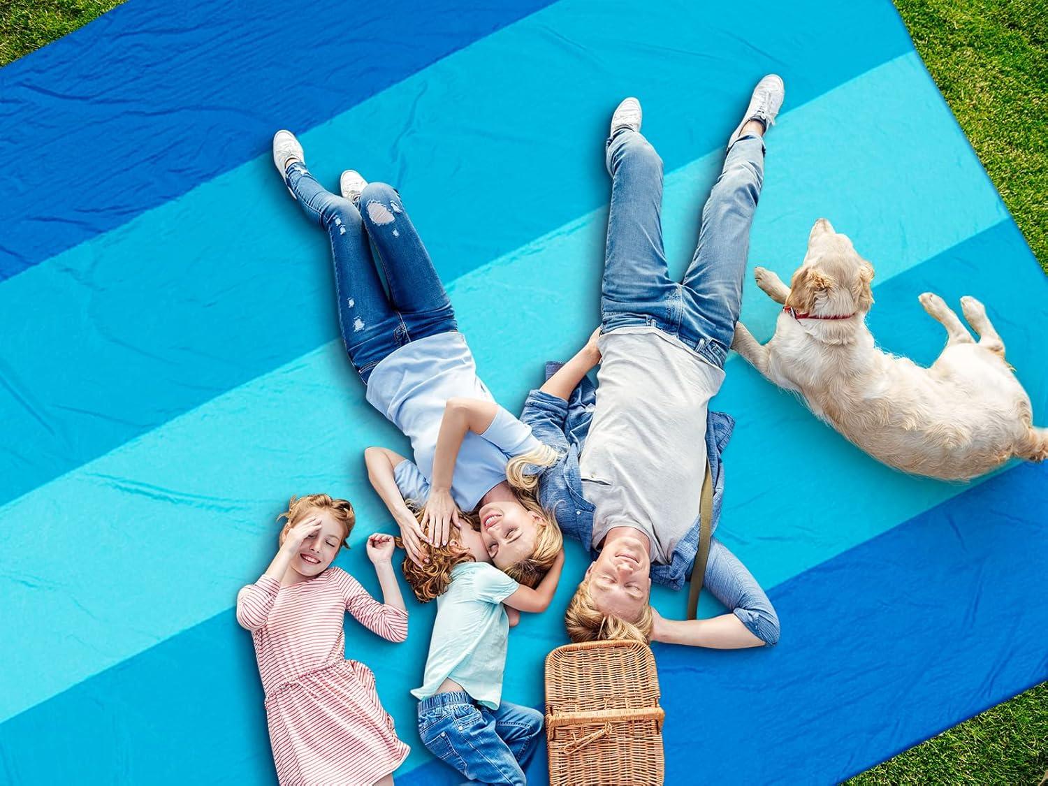 【Sutible Size】79*83 inch /beach / picnic blanket,comfortable for 4-7 persons. It can folded into the 5.1”×7.5” carried bag, convenient to carry.
