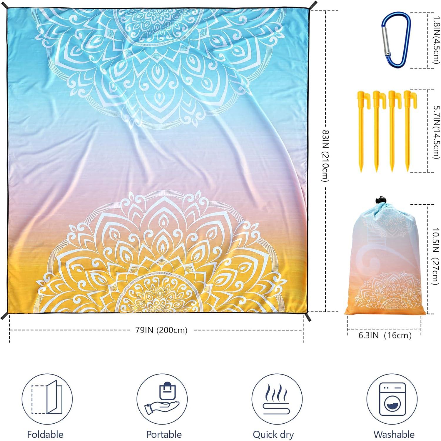 Beach Blanket Sandproof Extra Large Beach Mat Adults Waterproof Quick Drying Sand Free Mat Made by Premium Polyester with 4 Stakes & 4 Corner Pockets for Outdoor Travel Camping Hiking(Bb-dh-bluegreen-gradient)