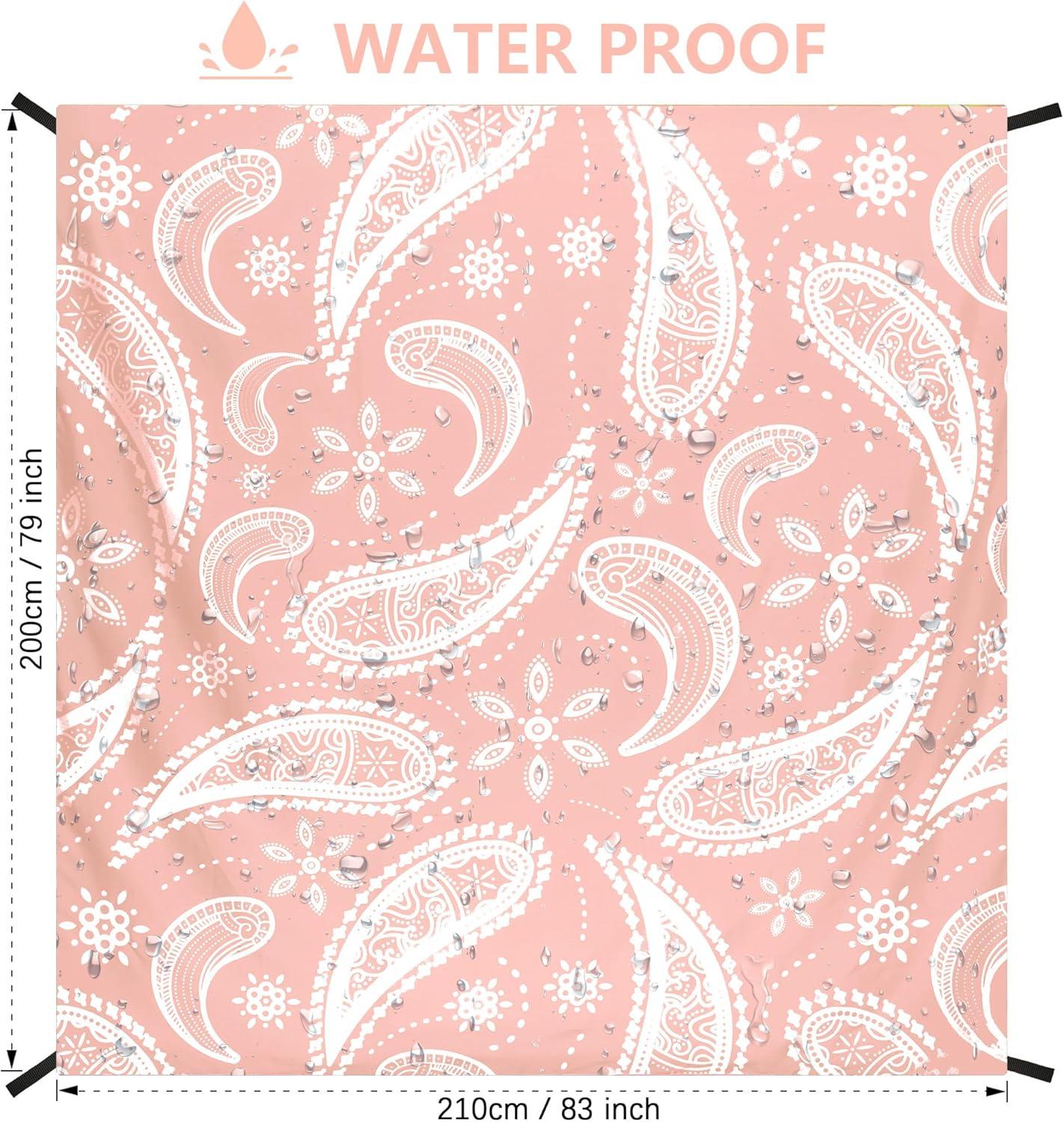 Beach Blanket Sandproof Extra Large Beach Mat Adults Waterproof Quick Drying Sand Free Mat Made by Premium Polyester with 4 Stakes & 4 Corner Pockets for Outdoor Travel Camping Hiking(Bb-paisley-pink)