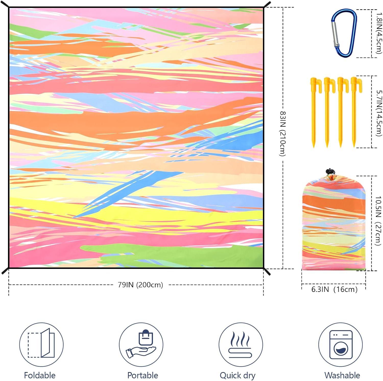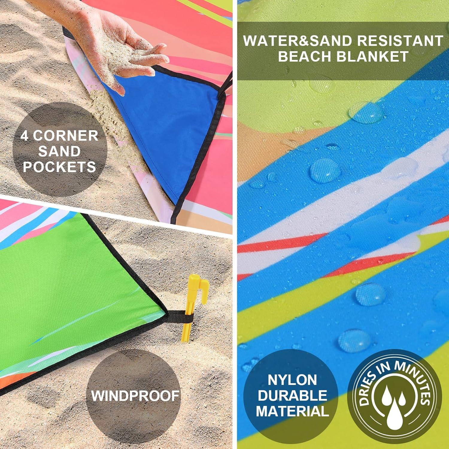 Beach Blanket Sandproof Extra Large Beach Mat Adults Waterproof Quick Drying Sand Free Mat Made by Premium Polyester with 4 Stakes & 4 Corner Pockets for Outdoor Travel Camping Hiking(Hbcs)