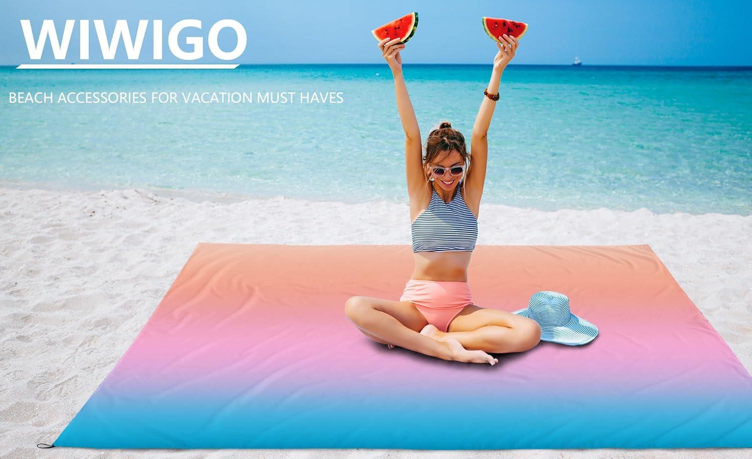 Beach Blanket Sandproof Extra Large Beach Mat Adults Waterproof Quick Drying Sand Free Mat Made by Premium Polyester with 4 Stakes & 4 Corner Pockets for Outdoor Travel Camping Hiking(Hbcs)
