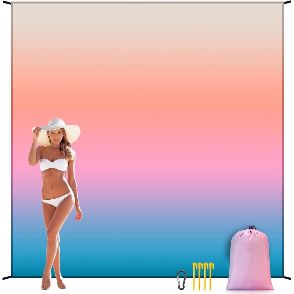 Beach Blanket Sandproof Extra Large Beach Mat Adults Waterproof Quick Drying Sand Free Mat Made by Premium Polyester with 4 Stakes & 4 Corner Pockets for Outdoor Travel Camping Hiking(Jb-rl)