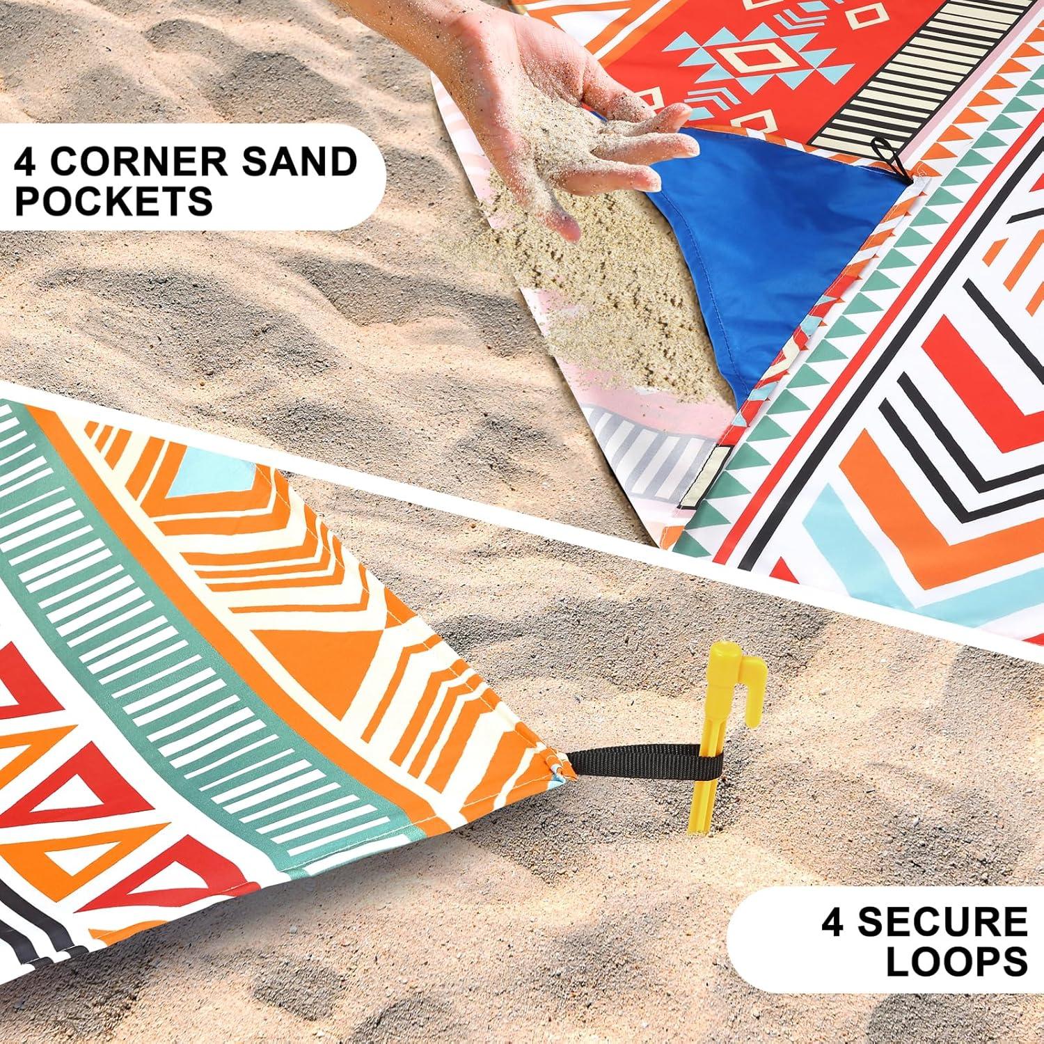 imageBeach Blanket Sandproof Extra Large Beach Mat Adults Waterproof Quick Drying Sand Free Mat Made by Premium Polyester with 4 Stakes amp 4 Corner Pockets for Outdoor Travel Camping HikingNation Style2