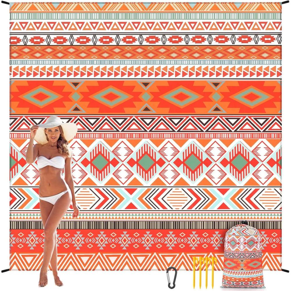 Beach Blanket Sandproof Extra Large Beach Mat Adults Waterproof Quick Drying Sand Free Mat Made by Premium Polyester with 4 Stakes & 4 Corner Pockets for Outdoor Travel Camping Hiking(Nation Style-2)