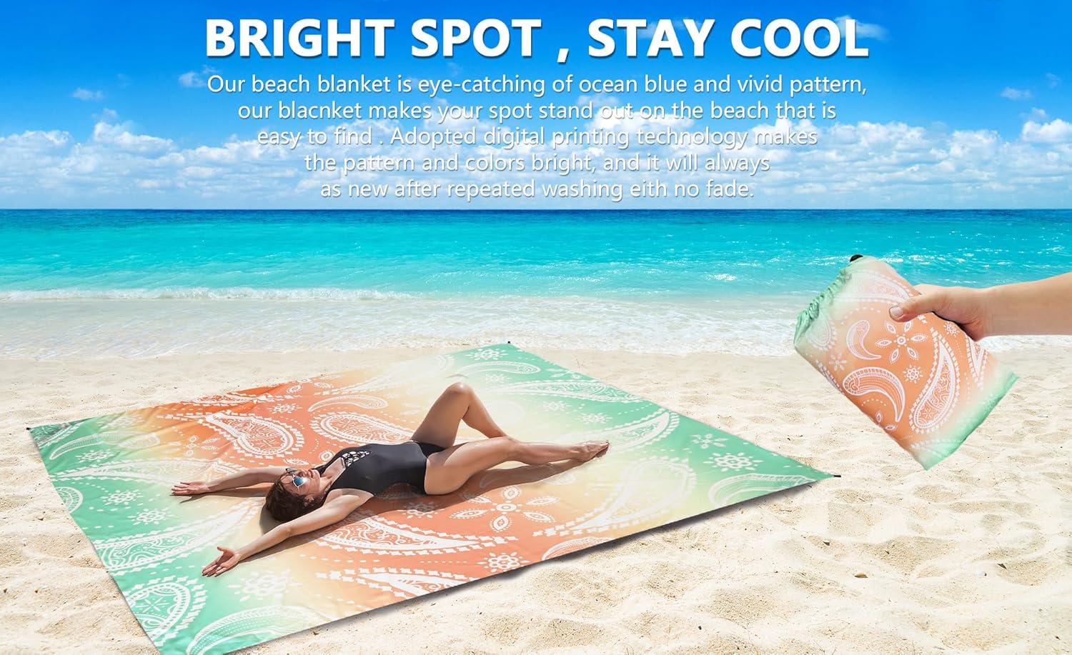 【Waterproof & Lightweight】Nylon fabric materials, durable and breathable,water repellent , easy to clean, the beach blanket will last for years of use.