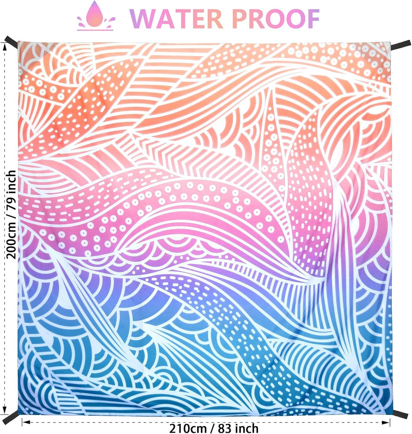 Beach Blanket Sandproof Extra Large Beach Mat Adults Waterproof Quick Drying Sand Free Mat Made by Premium Polyester with 4 Stakes & 4 Corner Pockets for Outdoor Travel Camping Hiking(Ripple-gradient)