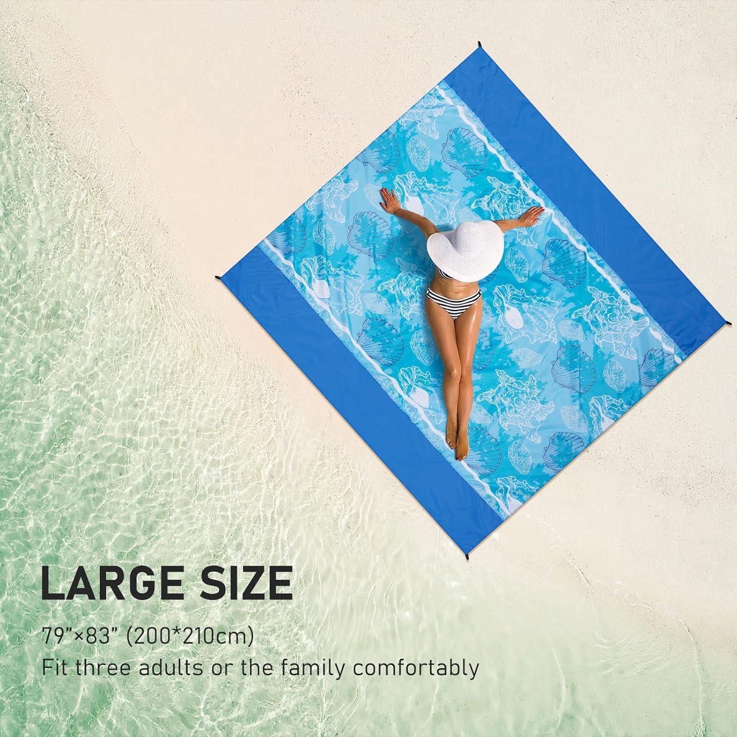 Beach Blanket Sandproof Extra Large Beach Mat Adults Waterproof Quick Drying Sand Free Mat Made by Premium Polyester with 4 Stakes & 4 Corner Pockets for Outdoor Travel Camping Hiking(Sj)