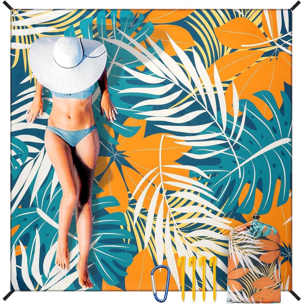 Beach Blanket Sandproof Extra Large Beach Mat Adults Waterproof Quick Drying Sand Free Mat Made by Premium Polyester with 4 Stakes & 4 Corner Pockets for Outdoor Travel Camping Hiking(Zly-bdhhl)