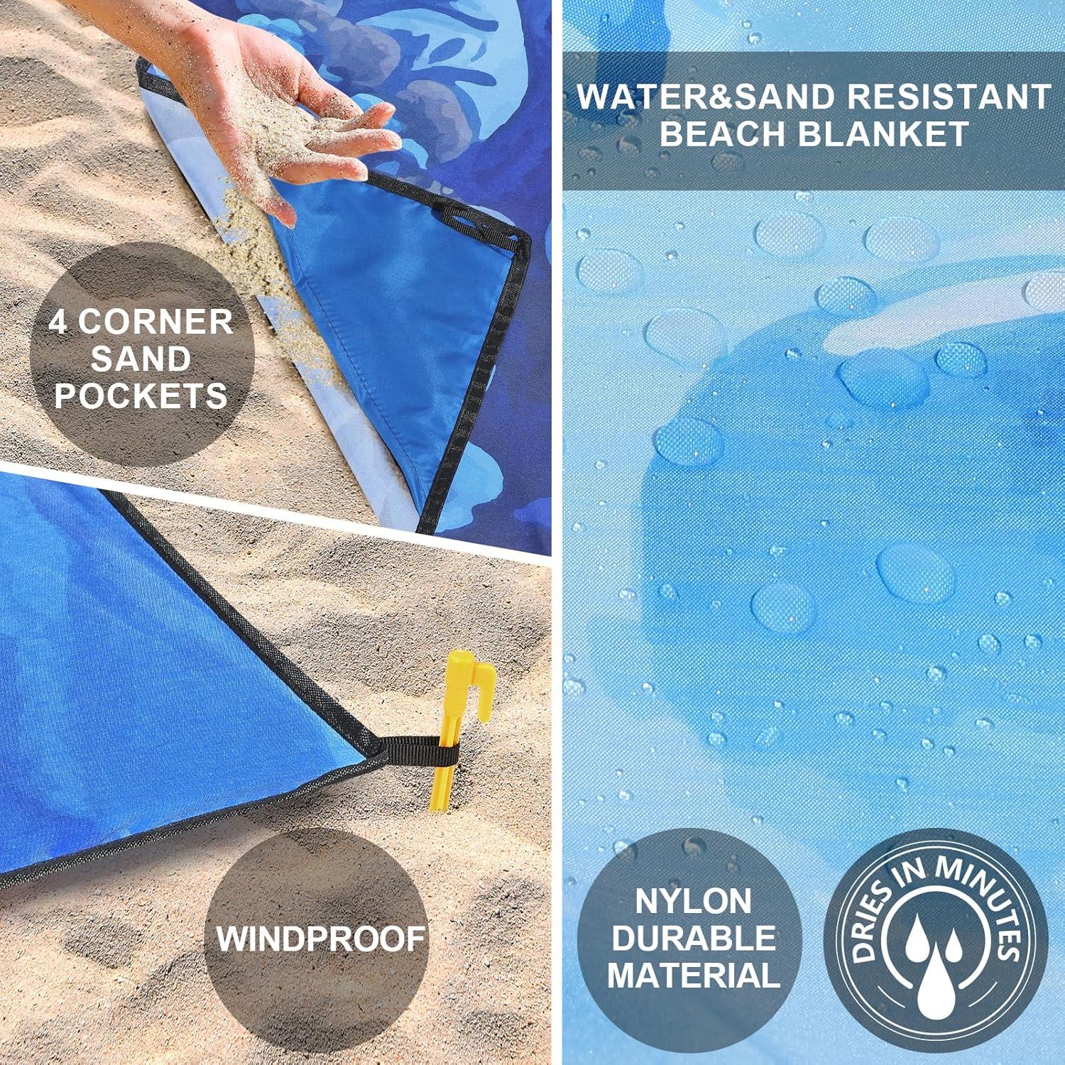【Sandproof & Waterproof】The nylon beach mat is waterproof and sand-proof,machine washable and quick drying.