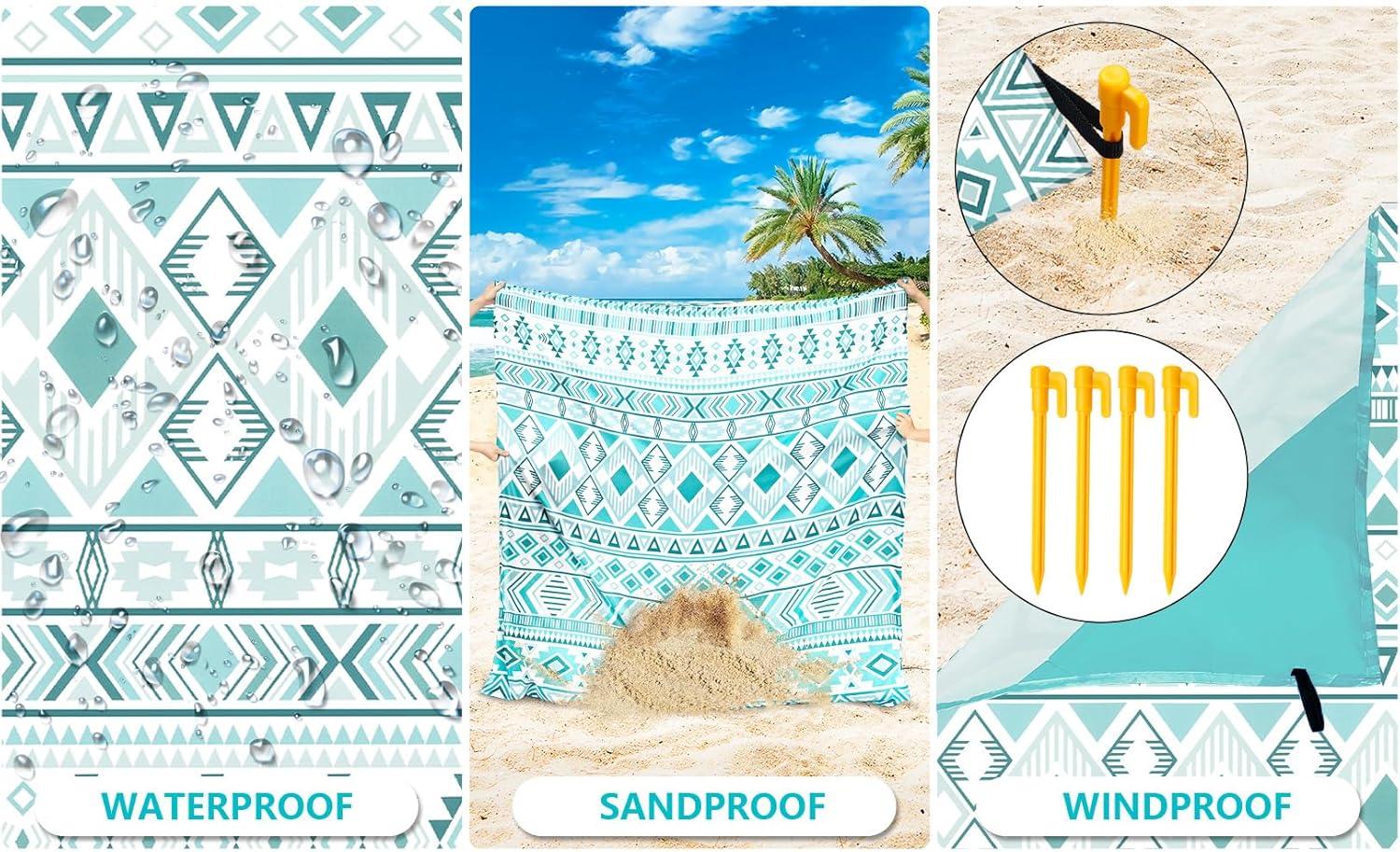 Get up to 60% off on Beach Blanket Waterproof Sandproof Beach Mat 79" X 83"/10’x9’for 2-8 Adults Quick Drying Outdoor Picnic Mat Beach Accessories for Travel, Camping, Hiking(Bohemian Style Green and Black) styles during our winter sale event.
