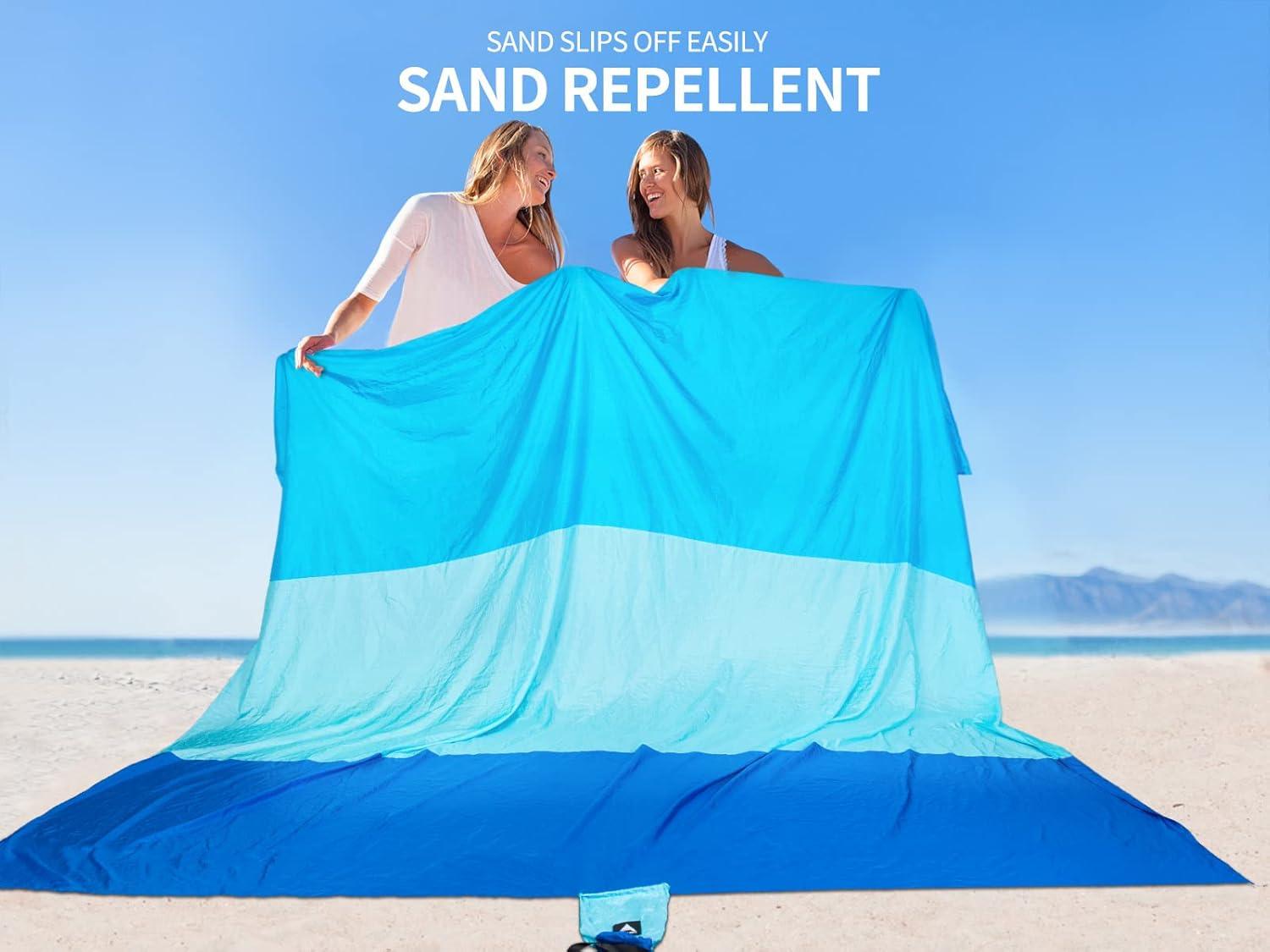 Beach Blanket Waterproof Sandproof Beach Mat 79" X 83"/10'x9'for 2-8 Adults Quick Drying Outdoor Picnic Mat Beach Accessories for Travel, Camping, Hiking(Bule-striped)