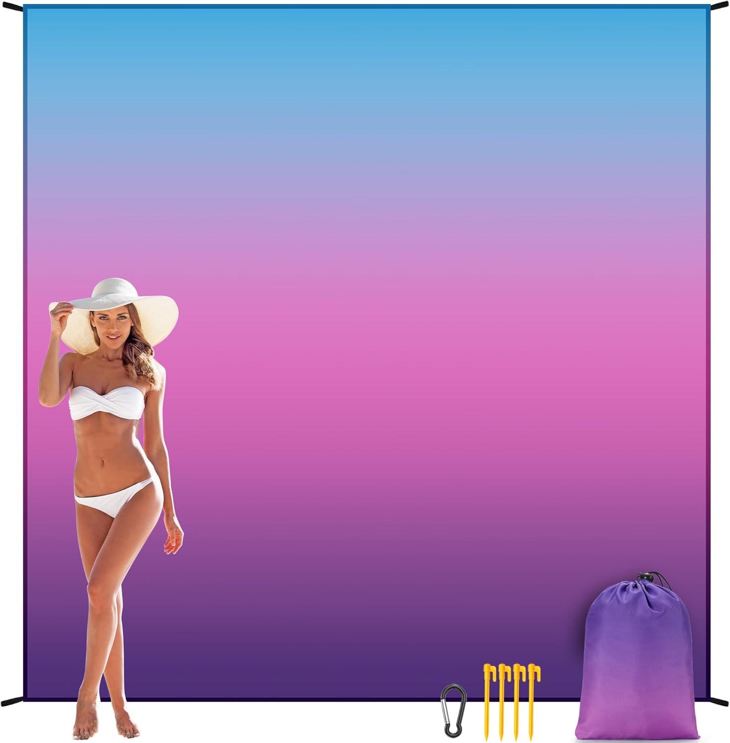 Beach Blanket Waterproof Sandproof Beach Mat 79" X 83"/10'x9'for 2-8 Adults Quick Drying Outdoor Picnic Mat Beach Accessories for Travel, Camping, Hiking(Gradient-bluepurple)