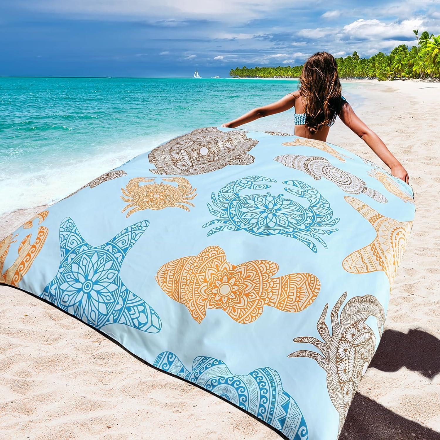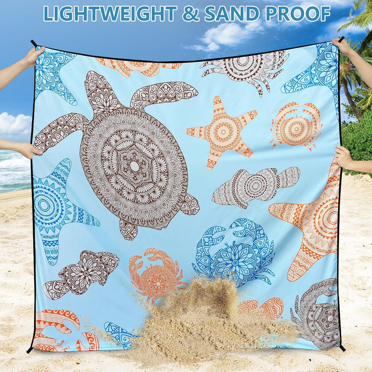 Beach Blanket Waterproof Sandproof Beach Mat 79" X 83"/10'x9'for 2-8 Adults Quick Drying Outdoor Picnic Mat Beach Accessories for Travel, Camping, Hiking(Mandala Sea)