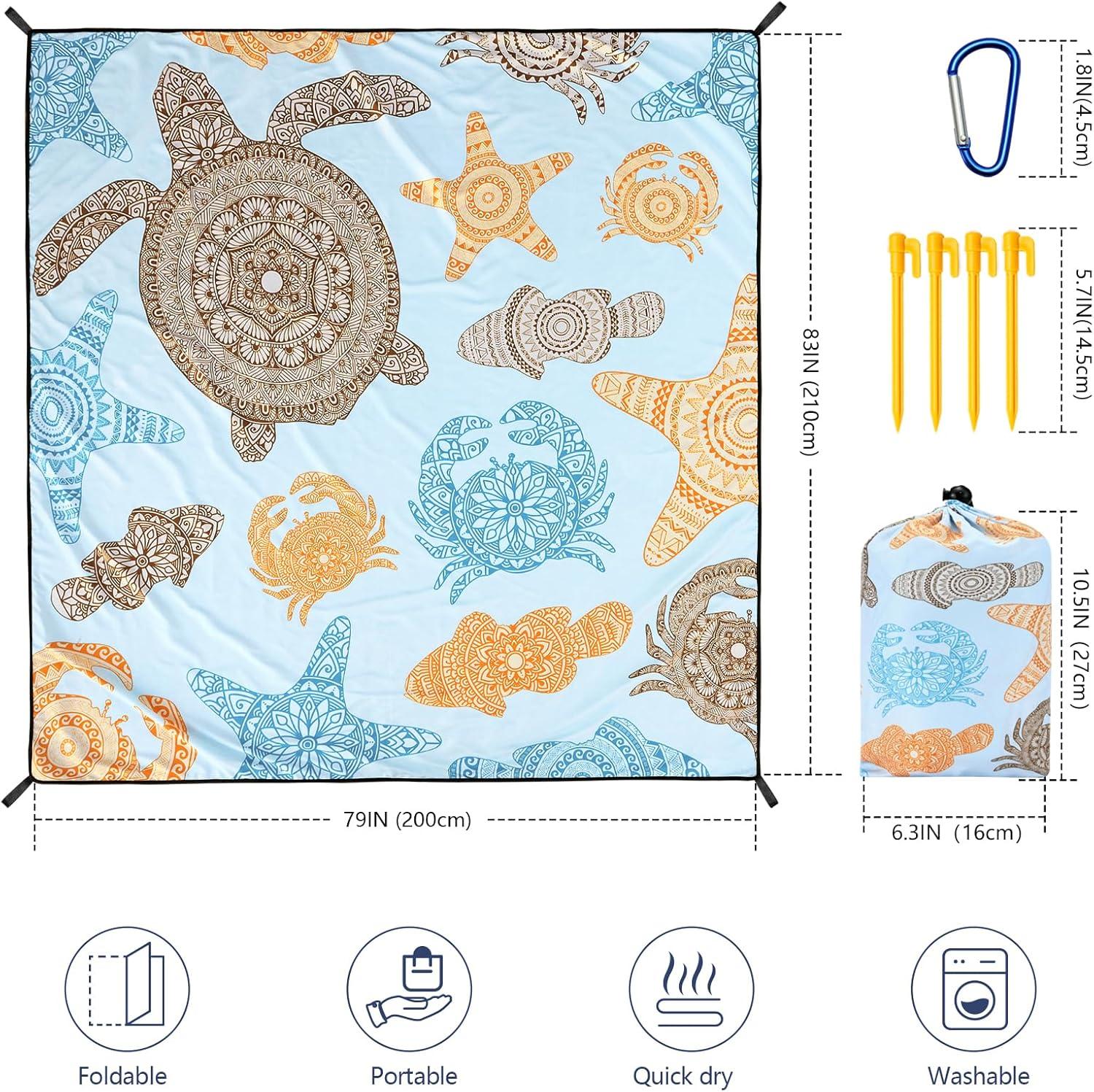Beach Blanket Waterproof Sandproof Beach Mat 79″ X 83″/10’x9’for 2-8 Adults Quick Drying Outdoor Picnic Mat Beach Accessories for Travel, Camping, Hiking(Mandala Sea)