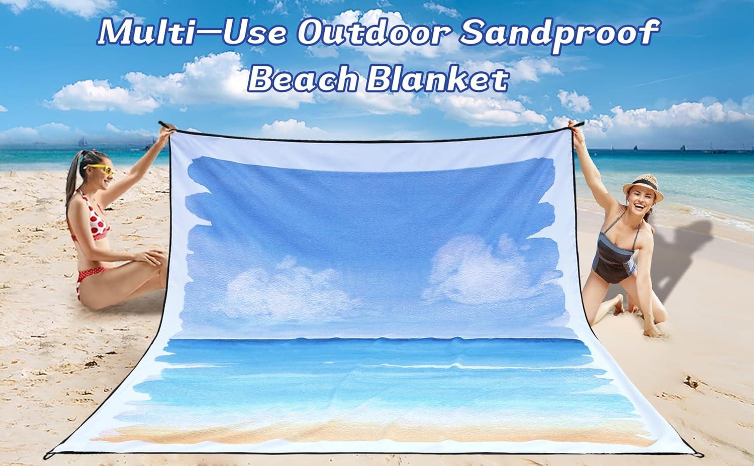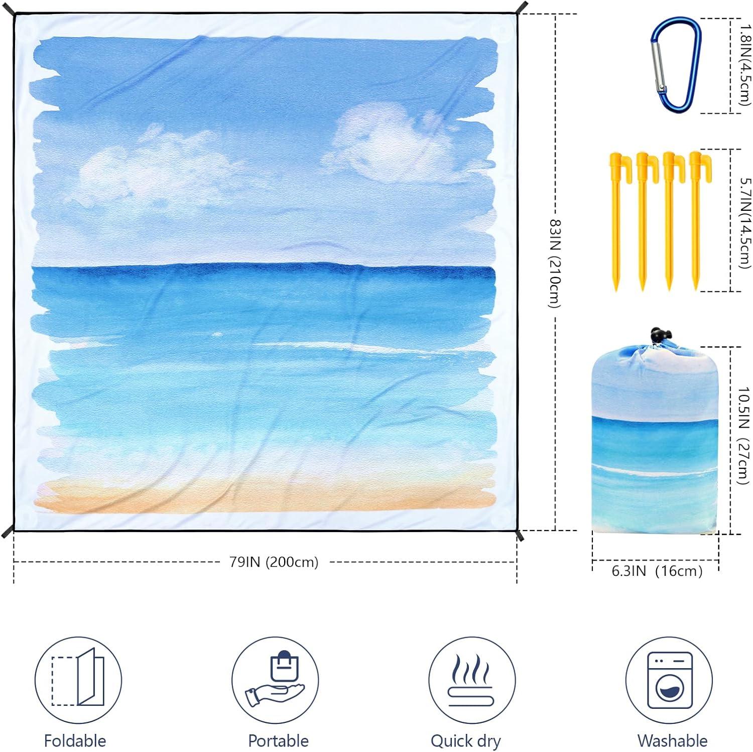 Beach Blanket Waterproof Sandproof Beach Mat 79" X 83"/10'x9'for 2-8 Adults Quick Drying Outdoor Picnic Mat Beach Accessories for Travel, Camping, Hiking(Oil Painting Beach)