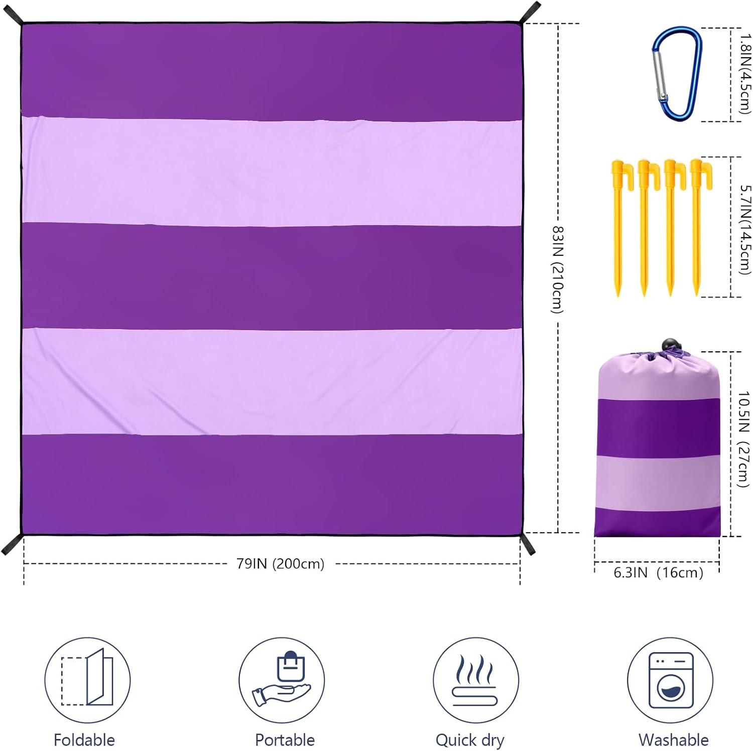Beach Blanket Waterproof Sandproof Beach Mat 79" X 83"/10'x9'for 2-8 Adults Quick Drying Outdoor Picnic Mat Beach Accessories for Travel, Camping, Hiking(Solid-purple)