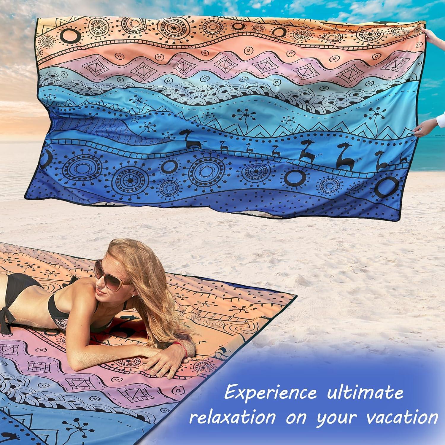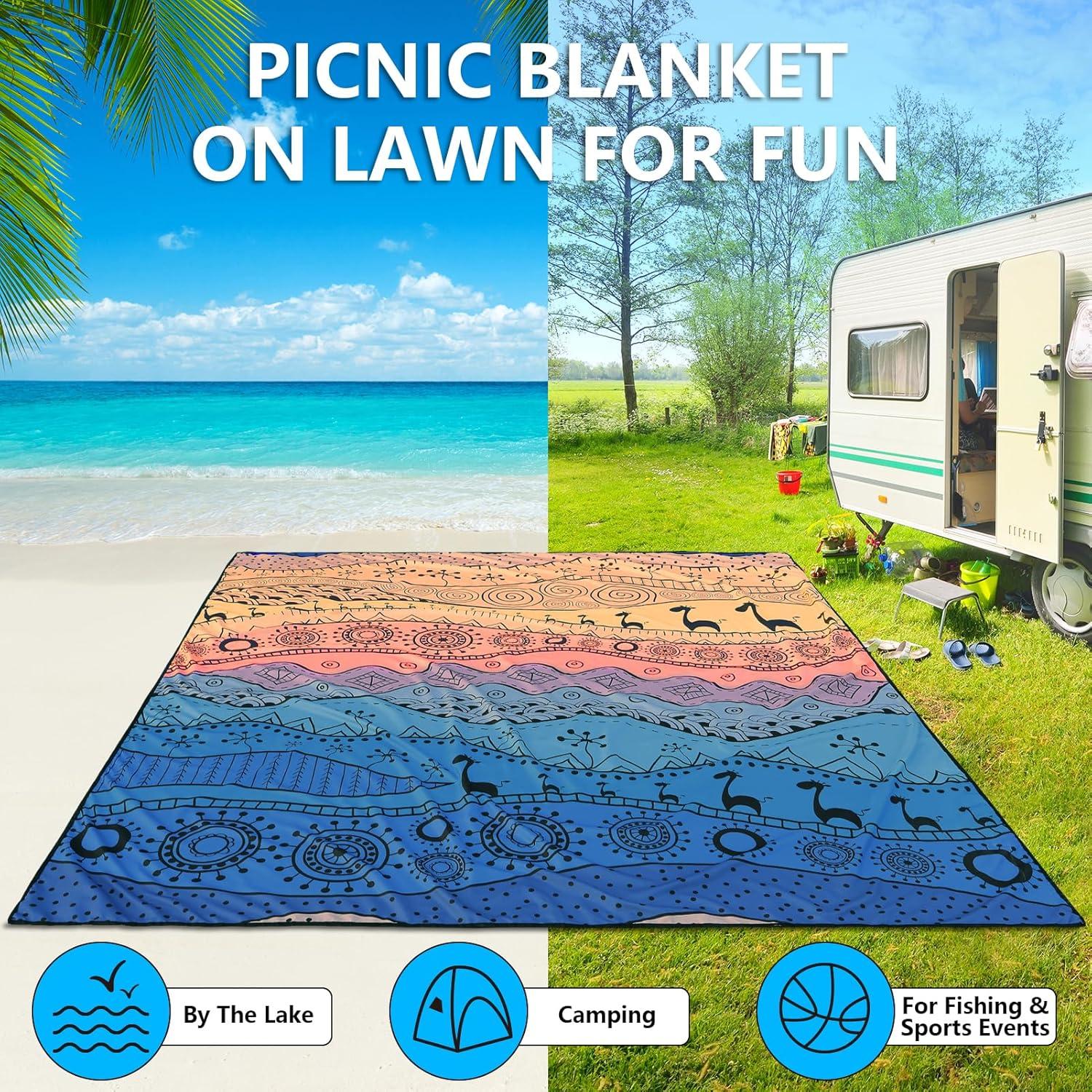 Beach Blanket Waterproof Sandproof Beach Mat 79" X 83"/10'x9'for 2-8 Adults Quick Drying Outdoor Picnic Mat Beach Accessories for Travel, Camping, Hiking(Tribe-pink Blue)