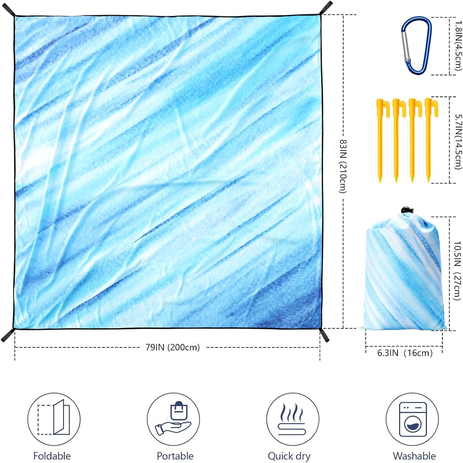 Beach Blanket Waterproof Sandproof Beach Mat 79″ X 83″/10’x9’for 2-8 Adults Quick Drying Outdoor Picnic Mat Beach Accessories for Travel, Camping, Hiking(Water Ripples)
